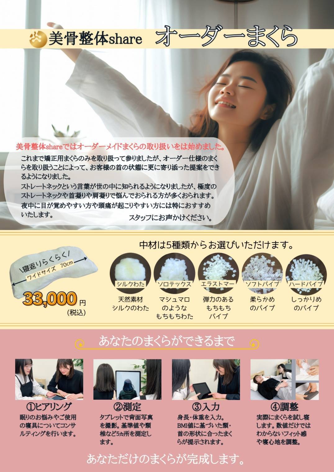 これまで矯正用まくらのみを取り扱って参りましたが、オーダー仕様のまくらを取り扱うことによって、患者様の首の状態に更に寄り添った提案をできるようになりました。