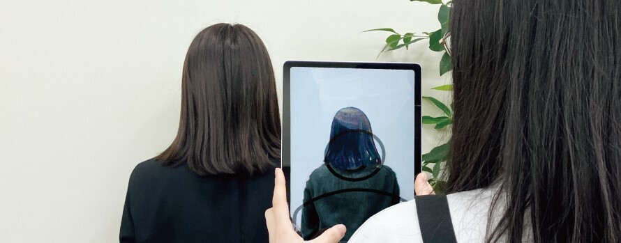 タブレットで背面写真を撮影。基準値や頭、頸など5ヵ所を測定します。